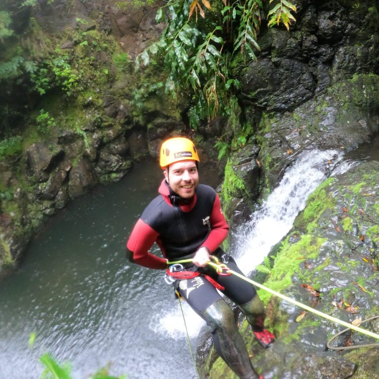 In meiner Freizeit suche ich genau solche Herausforderungen: etwa beim Canyoning in der Natur.